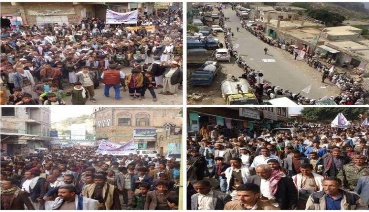 مظاهرات حاشدة بالمحويت تندد بالقرار الأمريكي بحق أنصار الله