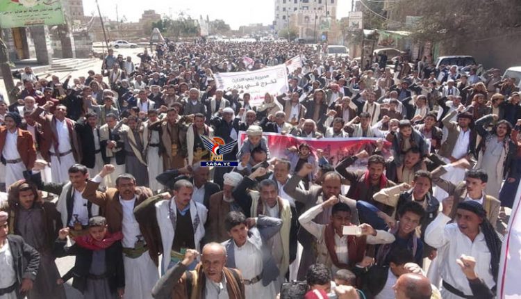 نظم المجلس المحلي والمكتب الإشرافي بمديرية الصافية بأمانة العاصمة اليوم، مسيرة ووقفة للتنديد بالقرار الأمريكي تصنيف أنصار الله منظمة إرهابية.