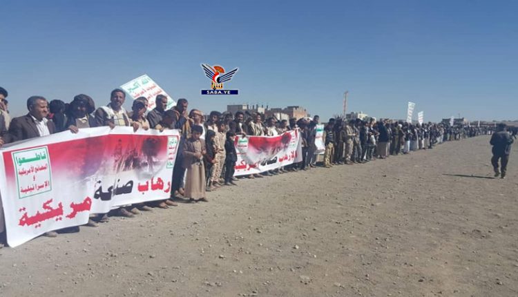 اعتبر أبناء مديرية سنحان محافظة صنعاء القرار الأمريكي بتصنيف أنصار الله منظمة إرهابية، انتهاكاً صارخاً للمواثيق والأعراف الإنسانية.