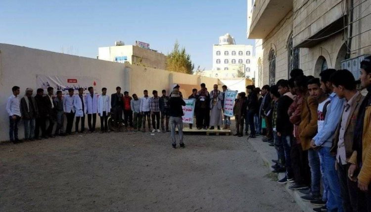 وقفة لمعهد الصمود الطبي تنديدا بقرار الخارجية الأمريكية بتصنيف أنصار الله منظمة إرهابية