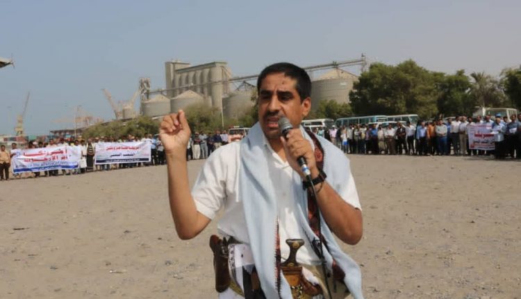 وقفة احتجاجية لمؤسسة موانئ البحر الأحمر بميناء الحديدة تنديدا بالقرار الأمريكي