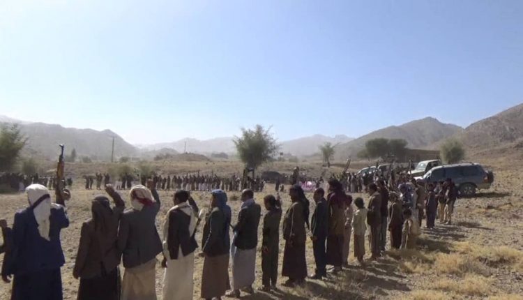 نظم أبناء مديريتي بدبدة وحريب القراميش بمحافظة مأرب اليوم وقفتين للتنديد بالقرار الأمريكي تصنيف أنصار الله ضمن قائمة التنظيمات الإرهابية.