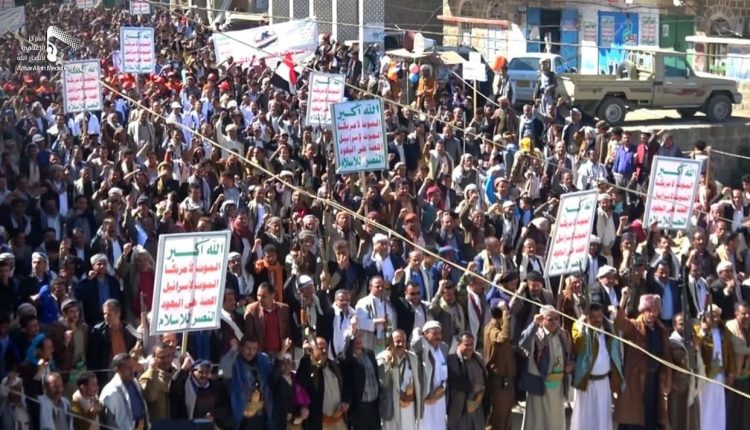 وستخرج عصر اليوم مسيرات كبرى في ساحة باب اليمن بالعاصمة صنعاء وفي ساحتي مدينة الحديدة والمنصورية في محافظة الحديدة، وفي ساحتي عبس والمحابشة بمحافظة حجة، رفضا للتصنيف الأمريكي ولاستمرار العدوان والحصار الأمريكي على اليمن.