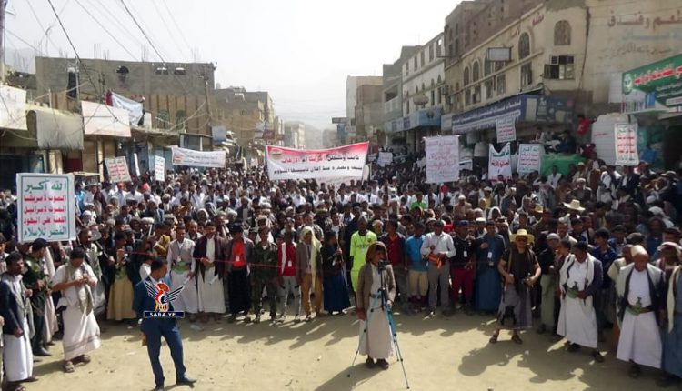وندد المحتشدون بإرهاب أمريكا وحلفائها بحق اليمن أرضاً وإنساناً منذ ست سنوات .. مؤكدين استمرار الصمود والثبات في مواجهة قوى الاستكبار العالمي.