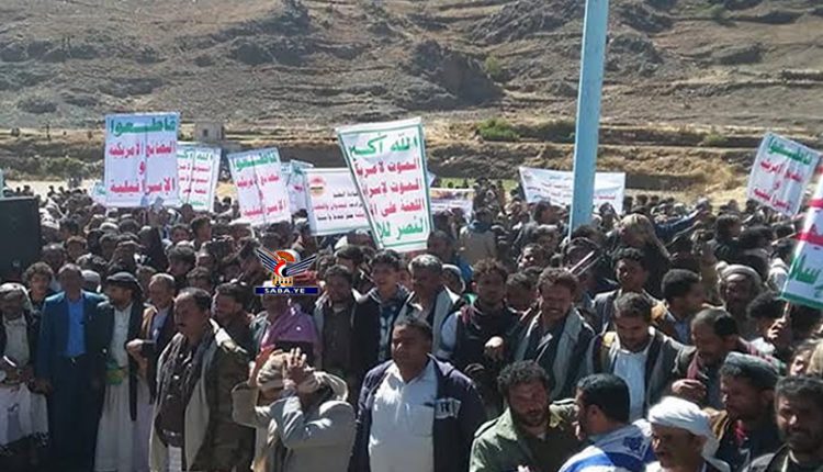 وردد المشاركون في المسيرة الهتافات ورفعوا اللافتات المنددة بالسياسة والإرهاب الأمريكي بحق الشعب اليمني الرافض لهيمنة قوى الاستكبار العالمي.
