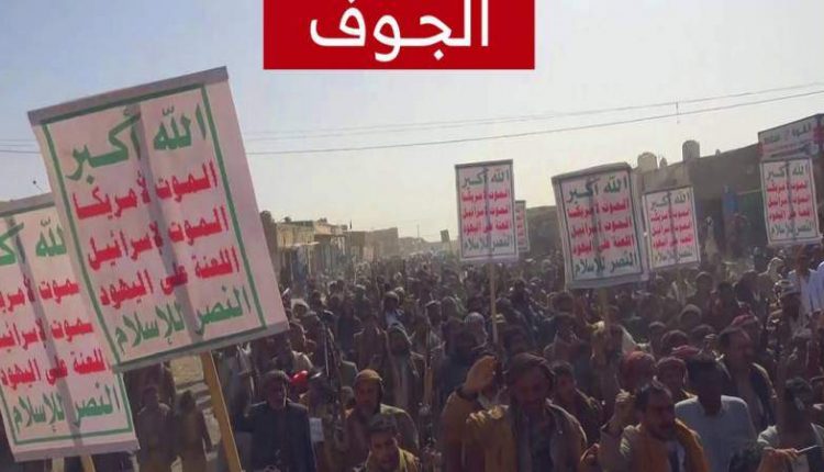 مسيرتان حاشدتان في الجوف رفضاً للإرهاب الأمريكي
