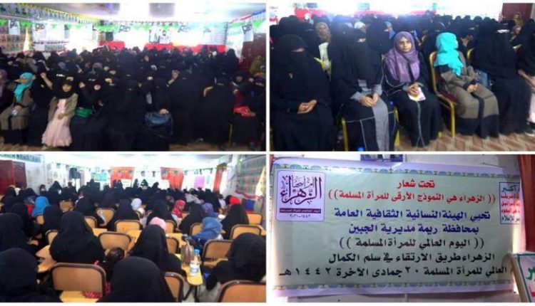 نظمت الهيئة النسائية بمحافظة ريمة، اليوم الاثنين، فعالية ثقافية باليوم العالمي للمرأة المسلمة يوم ميلاد فاطمة الزهراء عليها السلام.