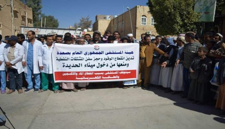 هيئة المستشفى الجمهوري بصعدة تنظم وقفة إحتجاجية تنديداً باستمرار إحتجاز السفن النفطية