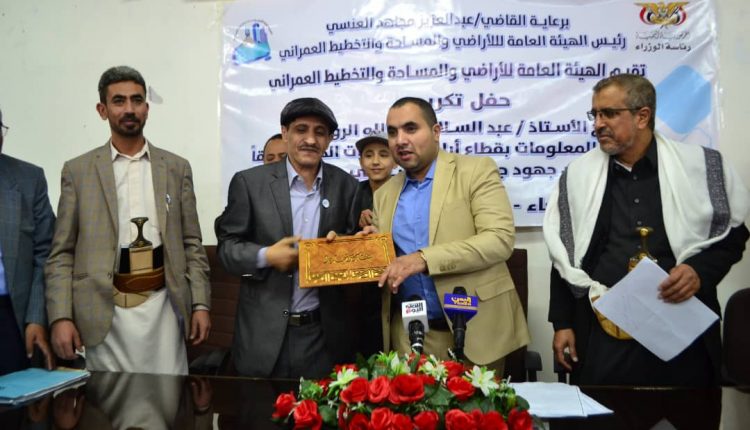 وأشاد القاضي العنسي، خلال تكريم عبد السلام الروضي رئيس مركز المعلومات سابقاً بقطاع أراضي وعقارات الدولة اليوم، بجهود الروضي خلال مسيرته العملية وفي إرساء قاعدة بيانات ومعلومات اتكأت عليها الهيئة في تنفيذ الأعمال المناطة بها.