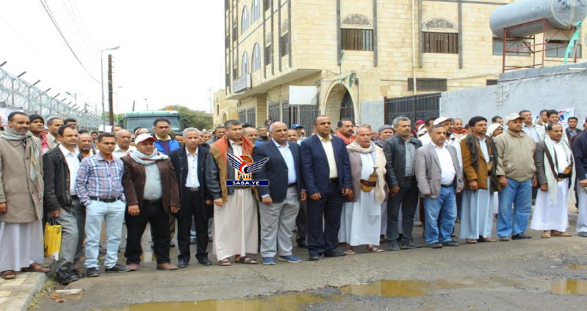نظمت الادارة العامة لكهرباء أمانة العاصمة والمؤسسة المحلية للمياه والصرف الصحي وفرع الهيئة العامة للموارد المائية اليوم وقفة إحتجاجية أمام مكتب الأمم المتحدة الواقع في شارع الستين بالعاصمة صنعاء للتنديد باستمرار العدوان في إحتجاز سفن الوقود.