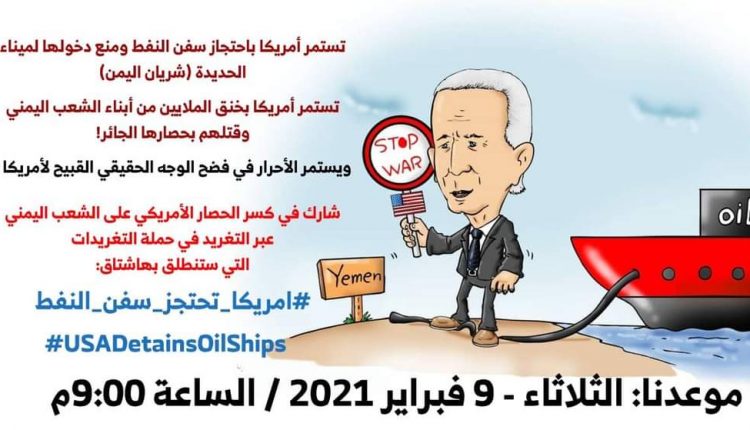 ودعا المنظمون إلى المشاركة الواسعة  في حملة التغريدات لكسر الحصار الأمريكي على الشعب اليمني  “تحت هاشتاق: