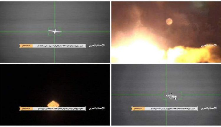 بالفيديو.. الإعلام الحربي يوزع مشاهد لعملية إسقاط طائرة CH4 المعادية في مأرب