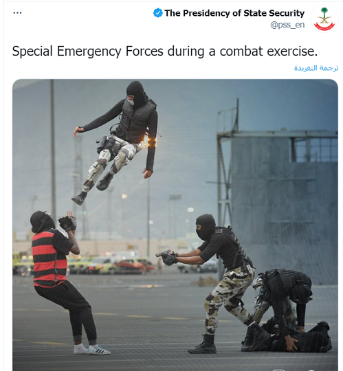 أثار حساب جهاز أمن الدولة السعودي ضجة واسعة، بعد مشاركته صورة لعناصره أثناء تدريب قتالي استخدم فيه برامج التصميم للتعديل عليها.