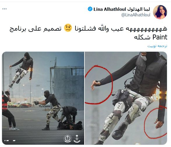 وكتبت لينا الهذلول شقیقة الناشطة السعودية لجين الهذول على حسابها في تويتر: “عيب والله فشلتونا.. تصميم على برنامج Paint شكله”.