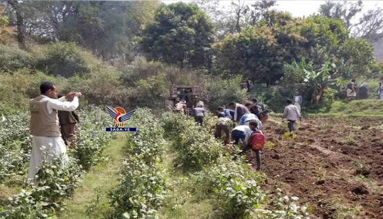 دشن وكيل محافظة إب رئيس اللجنة الزراعية جبران باشا اليوم، المبادرات المجتمعية والعمل الطوعي في اقتلاع شجرة القات بمديرية العدين .
