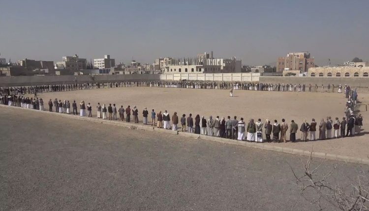 نظم القطاع التربوي بمديرية بني الحارث بأمانة العاصمة صنعاء اليوم السبت، وقفة إحتجاجية للتنديد بأعمال القرصنة البحرية واحتجاز سفن الوقود من قبل العدوان الأمريكي السعودي، واختطاف النساء في مأرب.