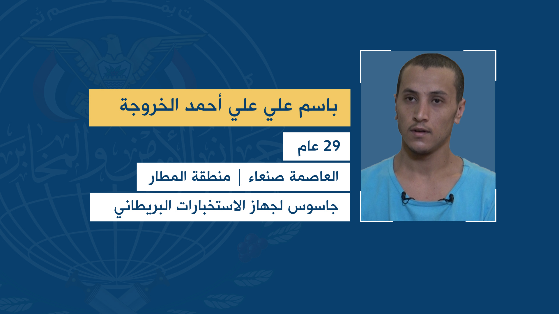 وتضمن تسجيل مصور نشره الإعلام الأمني عصر اليوم، اعترافات تفصيلية لجواسيس أمريكا وبريطانيا في اليمن إبتداء من استقطابهم وتجنيدهم وتدريبهم وإنتهاء بتوزيع وتنفيذ الأدوار الموكلة إليهم تحت إشراف ضباط الإستخبارات البريطانية المتواجدين في قاعدة عسكرية تم إنشاؤها من قبل دول العدوان في مطار الغيظة بمحافظة المهرة.