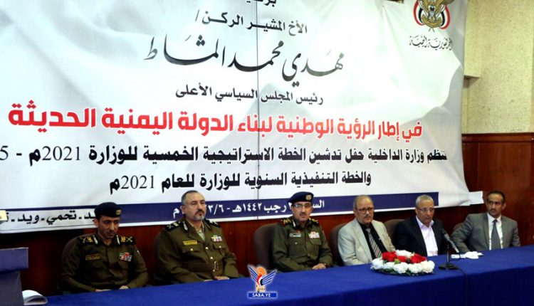 دشنت وزارة الداخلية بصنعاء اليوم الخطة الاستراتيجية الخمسية 2021- 2025م للمرحلة الثانية من تنفيذ الرؤية الوطنية لبناء الدولة اليمنية الحديثة والخطة التنفيذية السنوية للوزارة للعام 2021م.