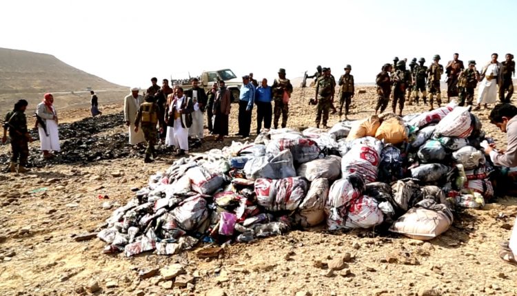 النيابة بصعدة تتلف 12طن و552 كجم من مادة الحشيش المخدر