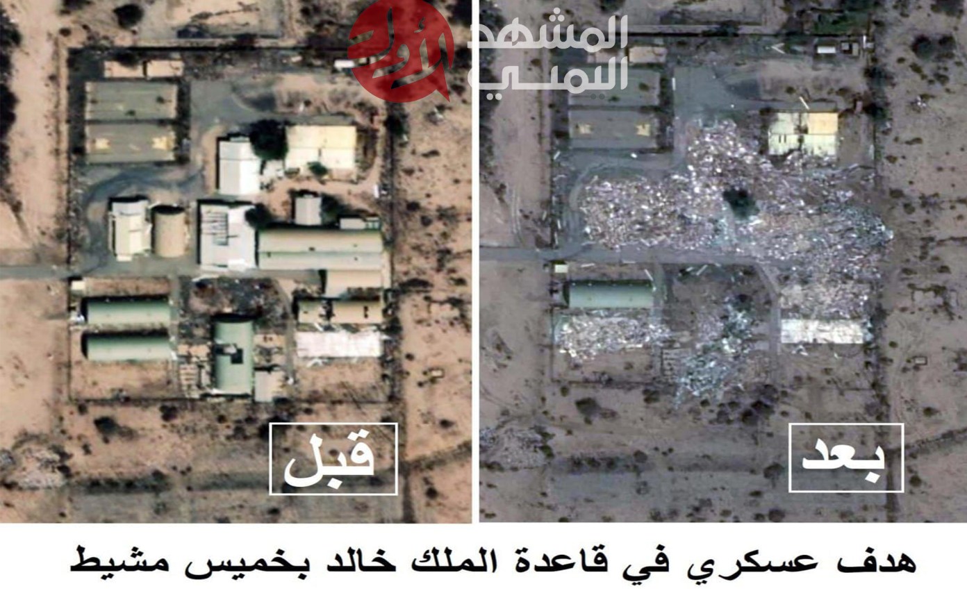وأظهرت صور جوية، نشرها موقع “المشهد اليمني الأول” أحد المواقع العسكرية الهامة في قاعدة الملك خالد الجوية بخميس مشيط، قبل وبعد الإستهداف، خلال الأيام الماضية.