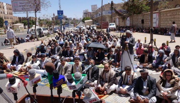 وفي الوقفة الاحتجاجية استنكر بيان صادر عن اللجان النقابية بشركة النفط والنقابات والاتحادات العمالية ومنظمات المجتمع المدني، الصمت الدولي والأمم المتحدة إزاء القرصنة البحرية التي تمارسها دول تحالف العدوان على سفن المشتقات النفطية رغم حصولها على تصاريح أممية.