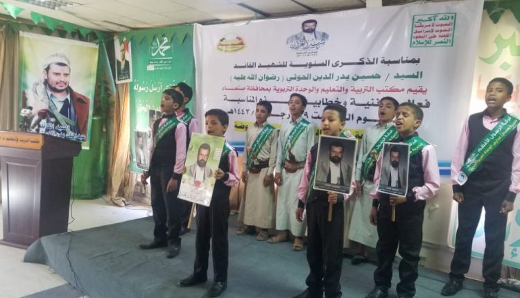 نظم مكتب التربية والتعليم والوحدة التربوية بمحافظة صنعاء اليوم فعالية خطابية إحياء للذكرى السنوية للشهيد القائد حسين بدر الدين الحوثي.