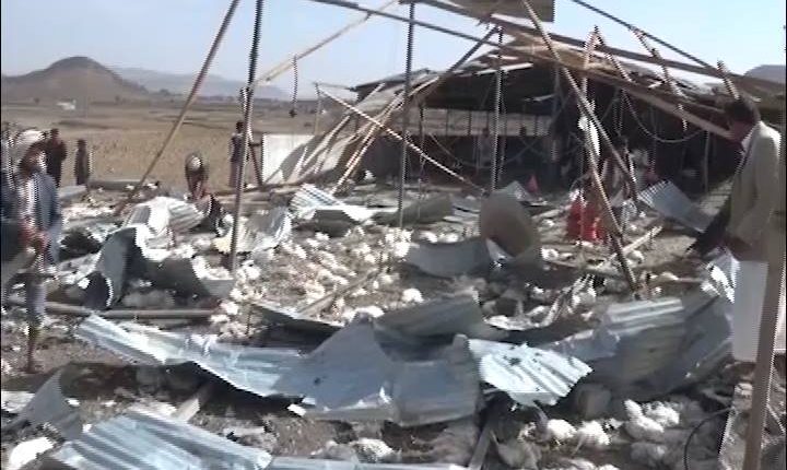 طيران العدوان يستهدف مزارع دواجن في السنتين بخمر في عمران