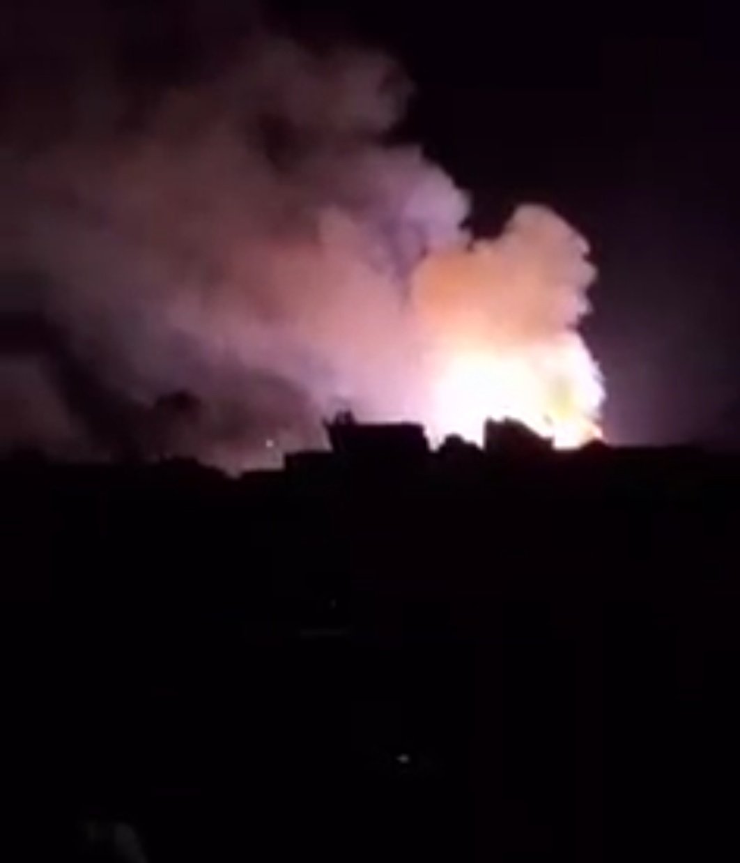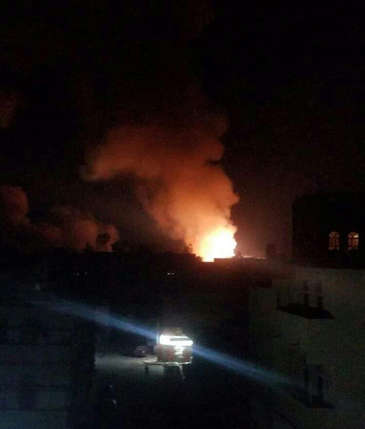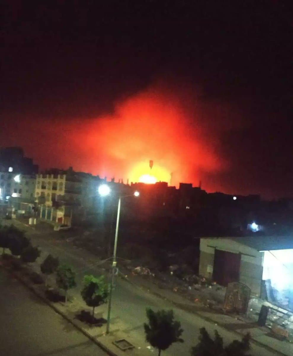 اسلحه وصواريخ انشطاريه تنفجر عدة انفجارات قام طيران العدوان السعودي الأمريكي بقصف العاصمة صنعاء به