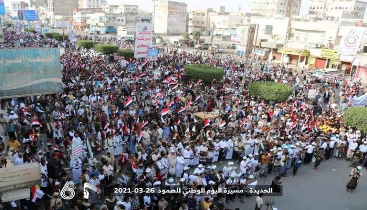 مسيرة جماهيرية وفعالية خطابية بالحديدة بيوم الصمود الوطني
