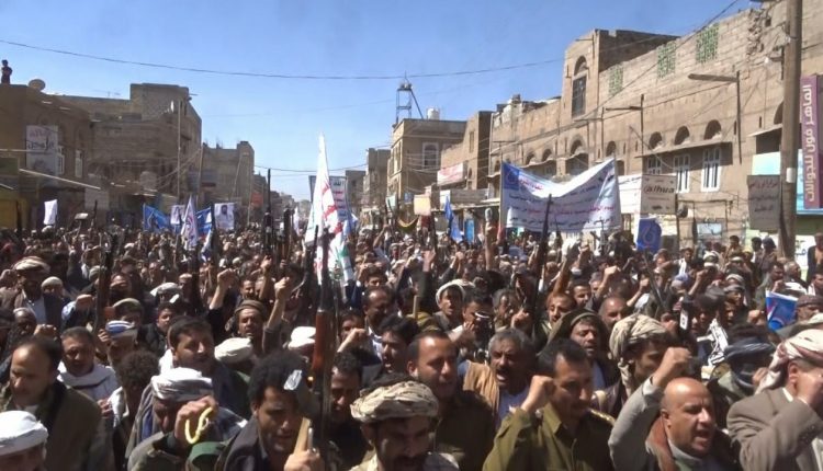 وفي المسيرة أكد وكيل المحافظة النقيب أن استمرار الصمود والثبات موقف مبدئي وثابت للشعب اليمني طالما استمر العدوان والحصار ، داعيا إلى مواصلة رفد الجبهات بالمال والرجال حتى يتحقق النصر المؤزر .