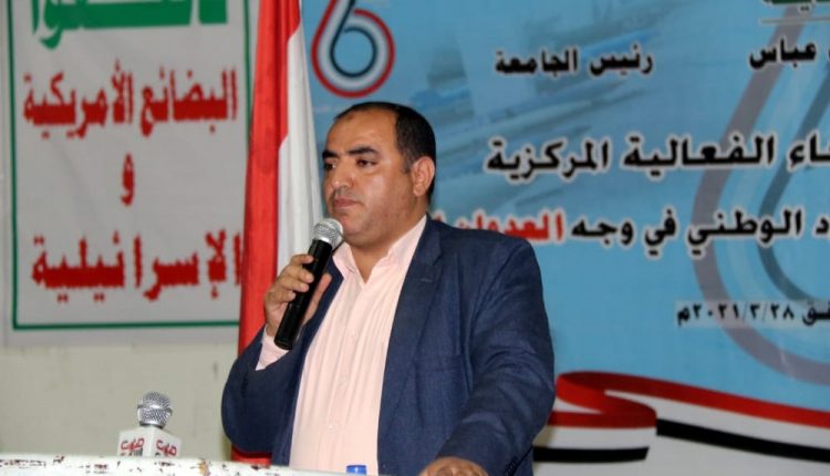من جانبه استعرض عضو رابط علماء اليمن محسن صالح الحمزي بحضور عمداء الكليات والكادر الأكاديمي والإداري بالجامعة وجمع من الطلاب والطالبات حقيقة العدوان على اليمن وطبيعته وأهدافه وأطماعه التوسعية والاستعمارية وسعيه لجعل اليمن تحت الوصاية والارتهان الخارجي .