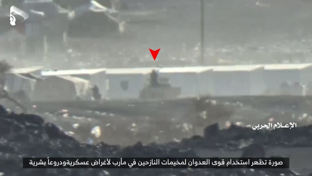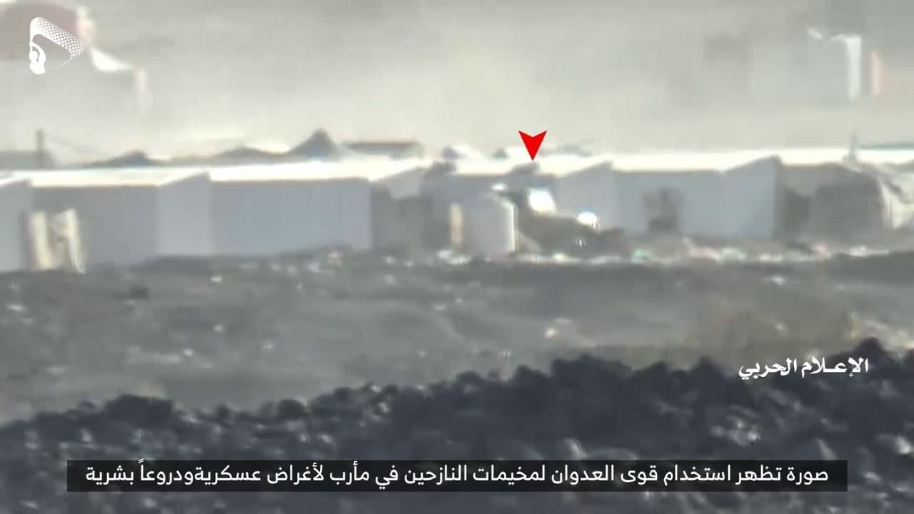 عرض الإعلام الحربي اليمني، اليوم الخميس، مشاهد لإستخدام قوى العدوان مخيمات النازحين الواقعة بالقرب من مدينة مأرب لأغراض عسكرية ودروعاً بشرية، بعد إقتراب المعارك منها خلال اليومين الماضيين وذلك في مسعى أخير منها لمنع تقدم قوات الجيش واللجان الشعبية صوب تحرير المدينة.