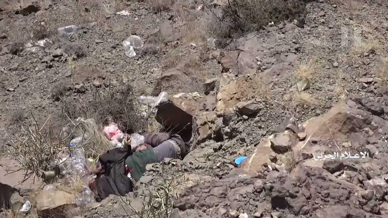 وبينت المشاهد أعداد من جثث المرتزقة لقوا مصارعهم أثناء زحفهم الفاشل الذي استمر لـ 5 ساعات.