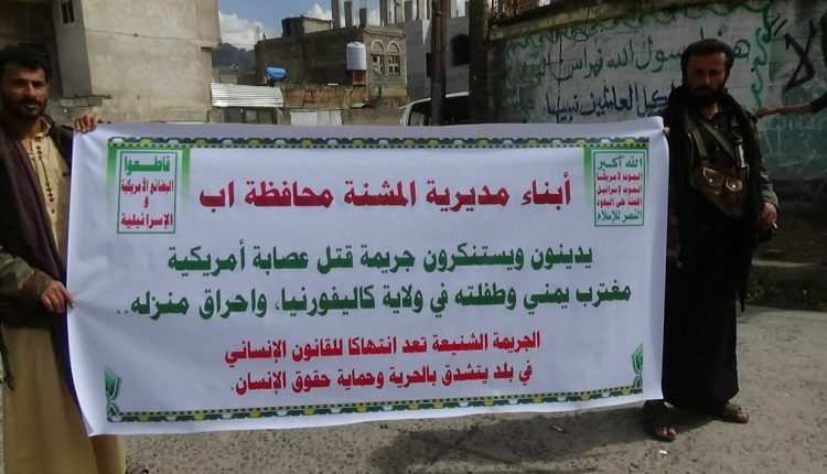 أقيمت في مديرية ذي السفال بمحافظة إب اليوم وقفة احتجاجية غاضبة تنديدا لما حصل للمغترب اليمني عصام الخضر في ولاية كاليفورنيا بأمريكا.