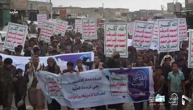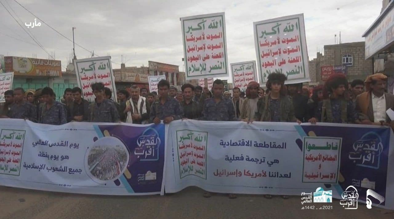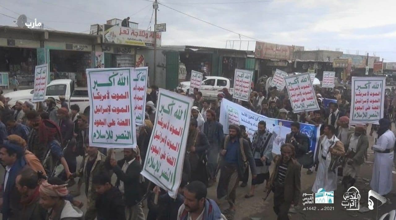 شهدت محافظة مأرب اليوم مسيرات ووقفات حاشدة في أربع مديريات، لإحياء يوم القدس العالمي بحضور رسمي وشعبي كبير.