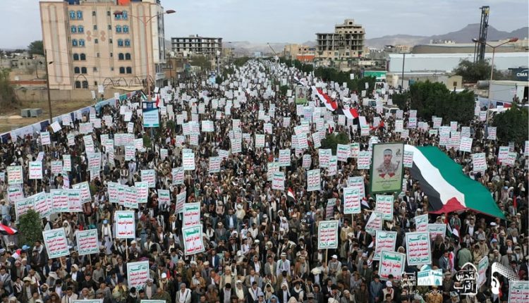 وجددت الحشود التأكيد على استمرار الشعب اليمني في الوقوف إلى جانب الشعب الفلسطيني وقضيته العادلة في مواجهة صلف وغطرسة الكيان الصهيوني ودول الاستكبار العالمي.