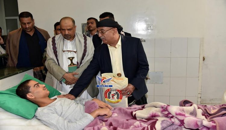 وحث الجهات المعنية على توفير الخدمات الصحية للجرحى ومتابعة حالتهم .. مشيداً بمعنويات الجرحى وتحمسهم لمشاركة المرابطين في الجبهات للذود عن العرض والأرض.