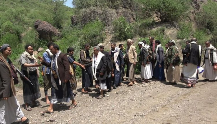 تفقد عدد من الوجهاء والشخصيات الاجتماعية من مديرية القفر في محافظة إب، أحوال المرابطين في مواقع جبهة باب غلق بمحافظة الضالع.
