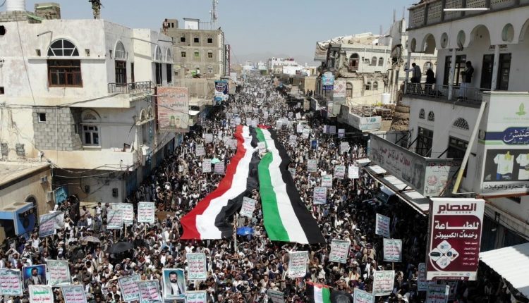 مسيرة حاشدة في مدينة صعدة نصرة للشعب والمقاومة الفلسطينية