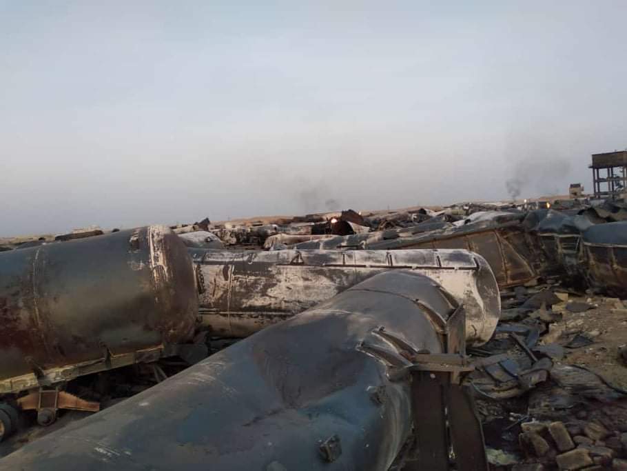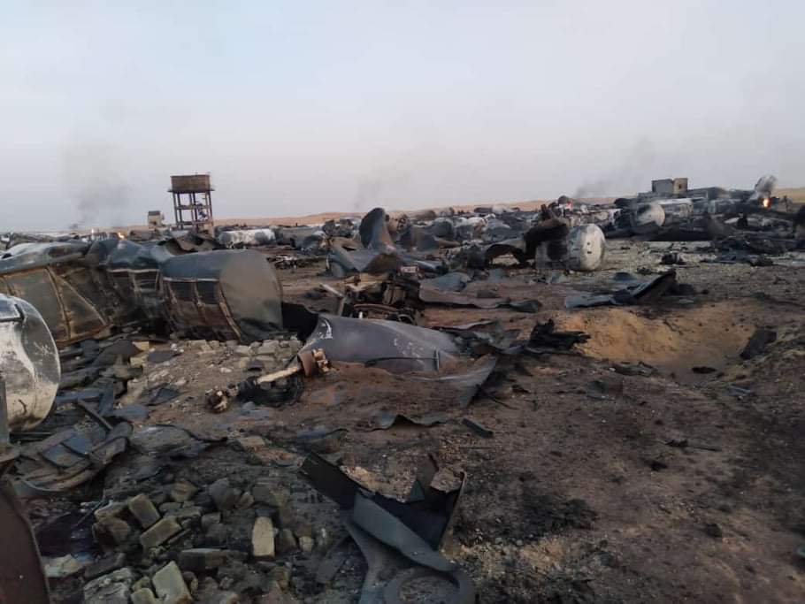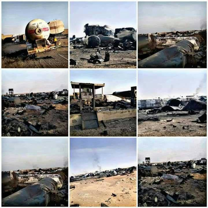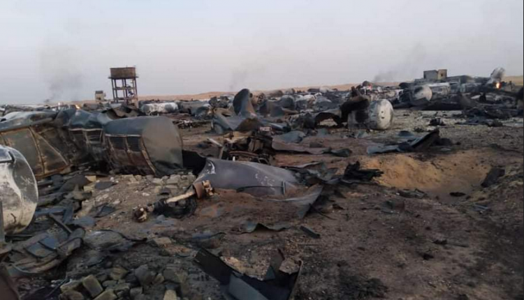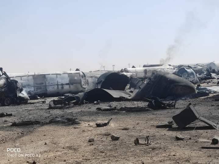 أظهرت صور ومقاطع فيديو نشرها ناشطون على مواقع التواصل ومواقع إخبارية حجم الخسائر الكبيرة جراء إستهداف مرتزقة العدوان يوم أمس موقف يضم عشرات القاطرات المحملة بالغاز والوقود في منطقة العرقين بوادي عبيدة شرقي مدينة مأرب.