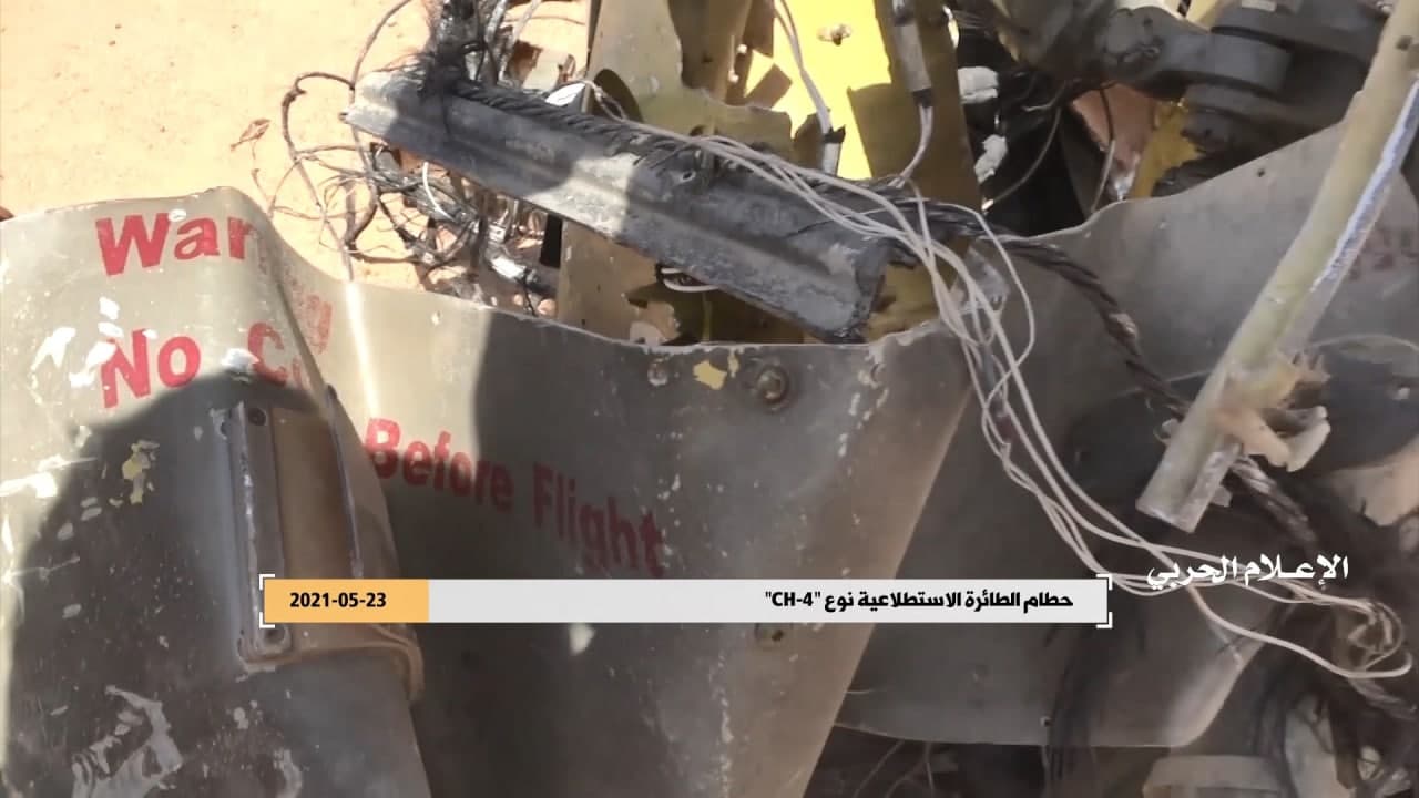 كما أظهرت المشاهد بقايا حطام الطائرة التجسسية المقاتلة CH-4 والتي تحظى بشهرة عالمية واسعة، وتجمع بين إمكانيات الاستطلاع والقصف، وهي الأولى من نوعها التي تصدر إلى خارج الصين، ويفتخر مُصنعي الطائرة CH-4 بأنها الأقوى من حيث قدرتها على الحمل وكفاءتها الطيرانية في العالم، إذ تعد كفاءتها الشاملة أفضل من الطائرة الأمريكية من دون طيار MQ9.