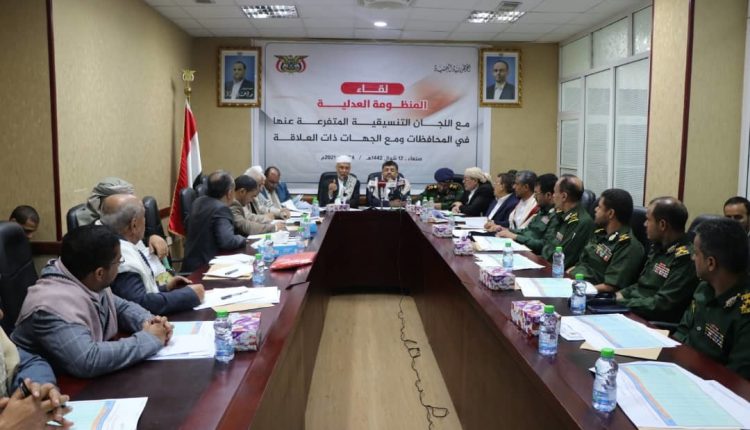 واستعرض، أبرز الصعوبات التي تواجهها اللجان التنسيقية في المحافظات والمديريات سواء في الجانب القضائي أو الأمني أو ما يتعلق بمشاكل البنى التحتية في المحاكم والنيابات والسجون واقتراح آلية معالجتها.