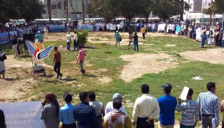 وقفة بالحديدة تندد باستمرار إحتجاز العدوان سفن المشتقات النفطية
