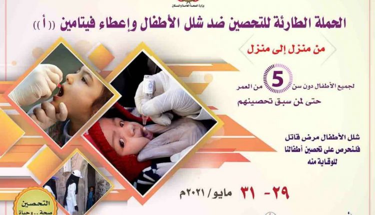 تنطلق السبت القادم بأمانة العاصمة صنعاء والمحافظات الحملة الطارئة للتحصين ضد شلل الأطفال وإعطاء فيتامين (أ).
