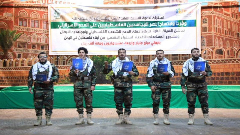 فيما أعلن رئيس الهيئة العامة للزكاة الشيخ شسمان أبو نشطان مساهمة هيئة الزكاة بمليار ريال من مصرف سبيل الله دعما للمقاومة الفلسطينية استجابة لدعوة قائد الثورة وابتهاجا بالانتصار على العدو الإسرائيلي، إلى جانب تدشين مشروع المساعدات النقدية لسفراء الأقصى أبناء الجالية الفلسطينية في اليمن بقيمة 14 مليون و100 ألف ريال.