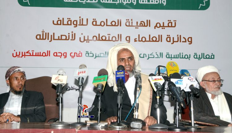 نظّمت الهيئة العامة للأوقاف ودائرة العلماء والمتعلمين لأنصار الله اليوم بصنعاء، فعالية خطابية بالذكرى السنوية للصرخة في وجه المستكبرين بعنوان “الصرخة عنوان لمشروع عملي للأمة لتصحيح واقعها ومواجهة تحدياتها”.