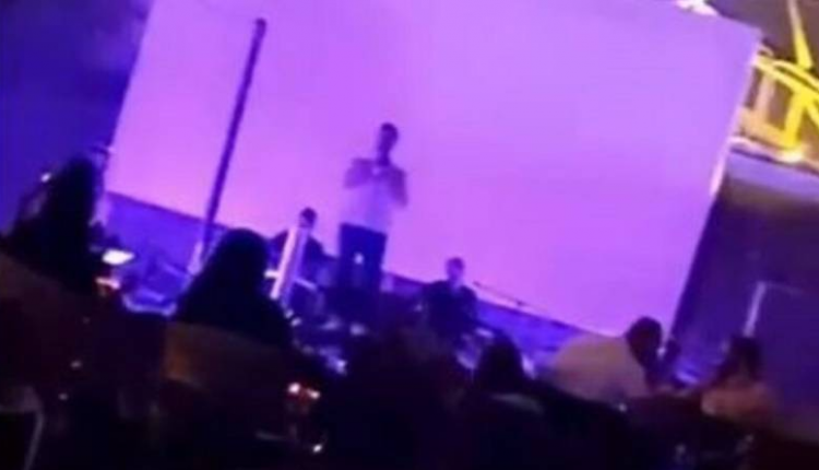 وفي مقطع آخر من نفس المكان، يظهر أحد المغنيين على مسرح، بينما يقوم الحضور المختلط ما بين فتيات وشباب بالرقص والتفاعل في مشهد دخيل على المجتمع السعودي.