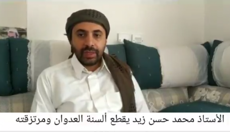 وقال محمد حسن زيد في فيديو مصور بثه ناشطون على وسائل التواصل الإجتماعي انه لا يتهم غير العدوان في جريمة إغتيال والده الأستاذ الشهيد حسن زيد.
