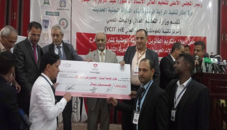 وفي الختام أعلنت الوزارة الفائزين بالمسابقة الوطنية لمشاريع التخرج في مجالات الحوسبة والهندسة، حيث فاز “مشروع نظام التحكم بالعدادات الذكية” لطلاب الجامعة اليمنية بالمركز الأول في مجال الحوسبة بمبلغ مليون ريال وجوائز عينية تشجيعية وشهادات تقدير.