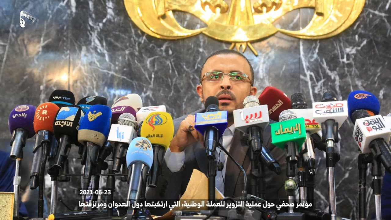 وأكد أن البنك المركزي في صنعاء لن يتوانى من خلال موقعه في مقدمة الجبهة الاقتصادية وسيتابع التطورات والمستجدات أولا بأول ويتخذ بشأنها ما يلزم، وقد قام بإصدار البيان الذي منع فيه تداول هذه العملة واعتبرها عملة مزيفة ومزورة، كما بدأ بالتنسيق مع الجهات المعنية بضبط أي مبالغ يحاول العدو تسريبها إلى المحافظات الحرة.